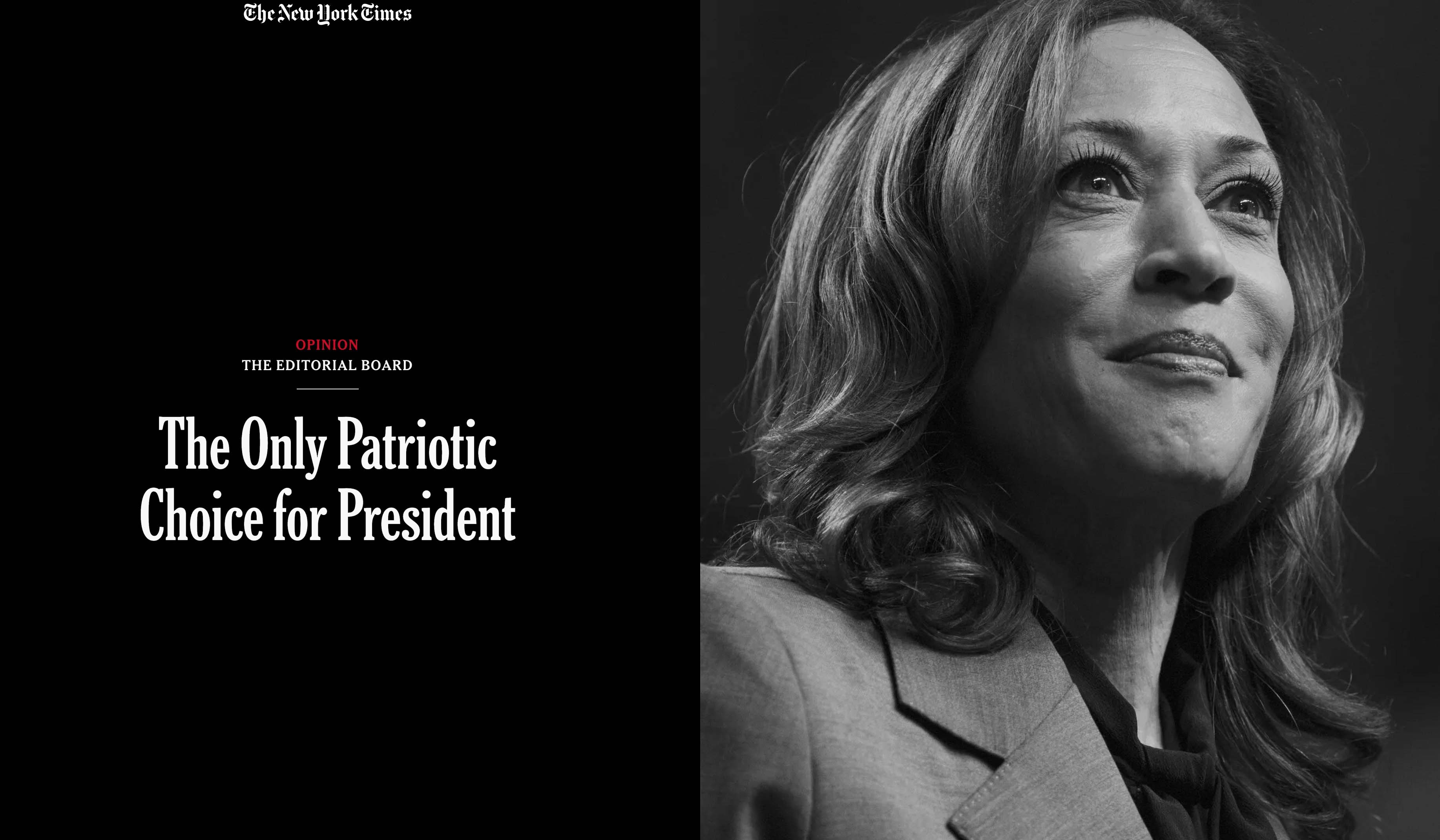 As a dedicated public servant who has demonstrated care, competence and an unwavering commitment to the Constitution, Ms. Harris stands alone in this race. She may not be the perfect candidate for every voter, especially those who are frustrated and angry about our government’s failures to fix what’s broken — from our immigration system to public schools to housing costs to gun violence. Yet we urge Americans to contrast Ms. Harris’s record with her opponent’s.